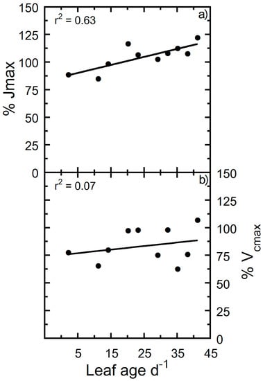 | Vcmax vs. Age | 0.96 | <0.00000 |