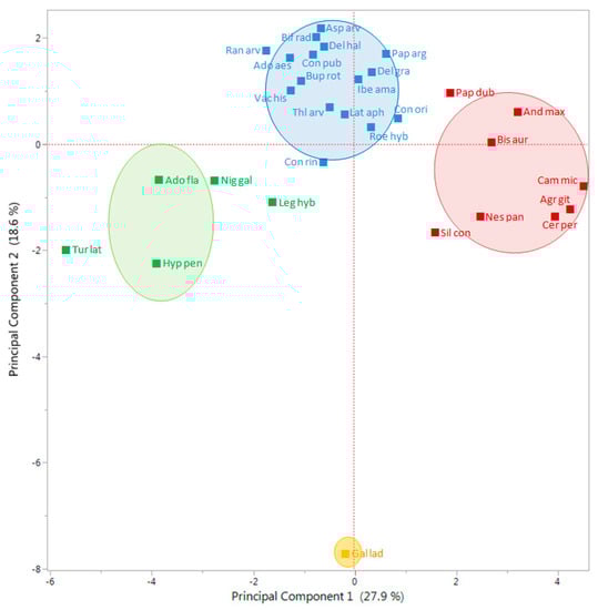 Galeopsis sp.) were clearly separated from the rest with similar multivariate analysis [