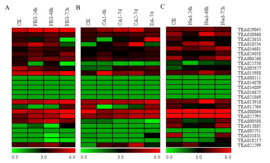 2.5. Expression Analysis of Tea Hsfs Using qRT-PCRs