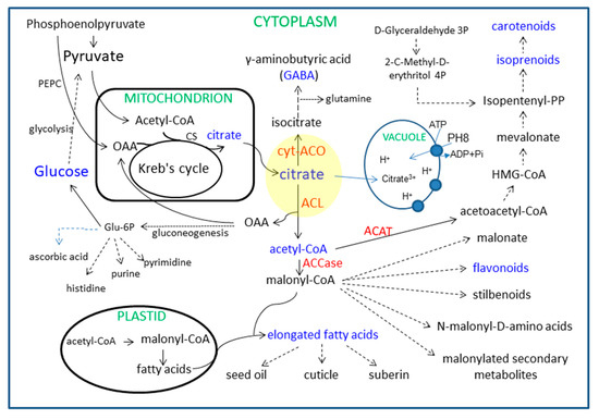- Rangasamy, D.; Ratledge, C. Compartmentation of ATP-Citrate Lyase in Plants. Plant Physiol. 2000, 122, 1225–1230. [Google Scholar] [CrossRef]