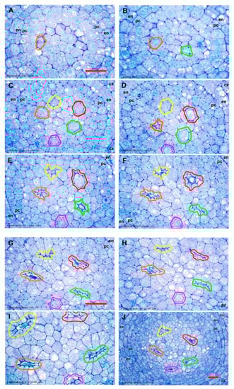 - Fahn, A. Plant Anatomy; Pergamon Press: Oxford, UK, 1990; pp. 67–72, 104, 333–334. [Google Scholar]