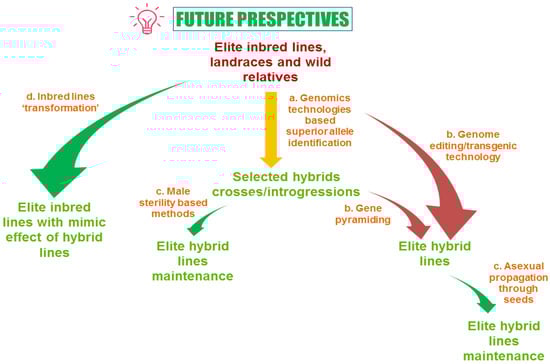 To feed the growing population under the situation of global climate change, the transgenics with biotic or abiotic stress resistance genes taken from other organisms is a promising tool [130], although the perception of people is mixed, and even in some cases strongly negative. Some part of negativity is coming because of the lack of published work regarding the consequences to other related or unrelated organisms of growing a genetically modified (GM) crop. These non-target effects, like the effects of GM crop on soil microbiome [131] and different food chains [132], remain understudied. Likewise, in present scenarios, the breeding paradigm is shifting from conventional to introgression breeding approaches by doing wide hybridization, embryo rescue, and genetic modification as well by using different genetic engineering tools. The purpose behind this is to introgression of abiotic and biotic stress resistance genes by making distance crosses and by using genetic engineering tools. GM eggplants with the Cry1Ac toxin derived from Bacillus thuringiensis popularly known as Bt Brinjal. In future, locus-specificity epigenome editing methods such as CRISPR-Cas9 [133] might be used for the identification and development of epigenetic variants. Inevitably, managed manipulation of gene expression from ‘heterotic’ pathways and genes that led to the variations into the magnitude of heterosis, may perhaps be of importance in crop production systems.