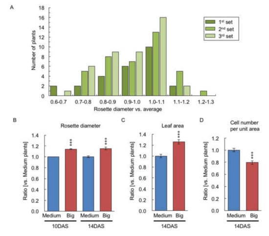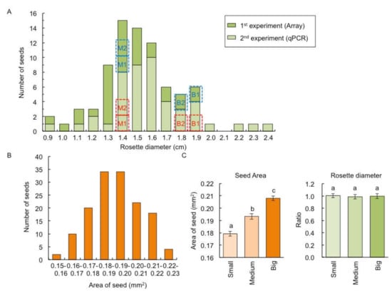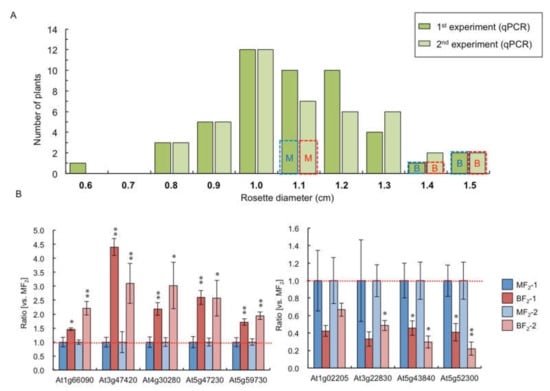 2.4. Comparison of Gene Expression between Big- and Medium-Sized F2 Plants