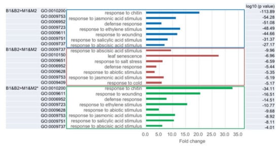 2.5. Classification of the Differentially Expressed Genes between Big- and Medium-Sized F1 Plants