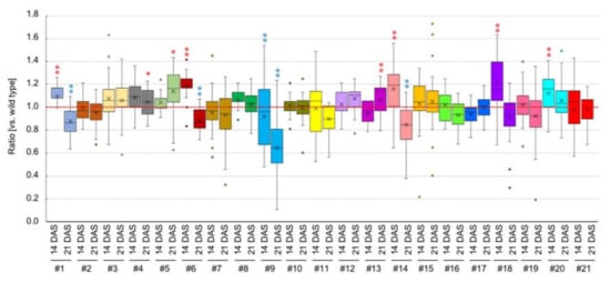 - Meyer, R.C.; Törjék, O.; Becher, M.; Altmann, T. Heterosis of biomass production in Arabidopsis: Establishment during early development. Plant Physiol. 2004, 134, 1813–1823. [Google Scholar] [CrossRef] [PubMed]