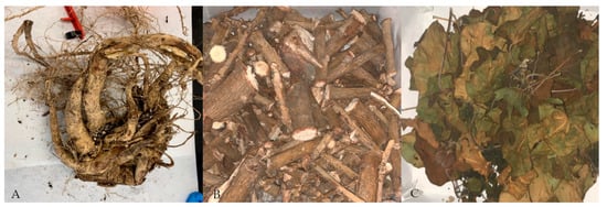 J. curcas L. (A) roots (B) stems and (C) leaves.