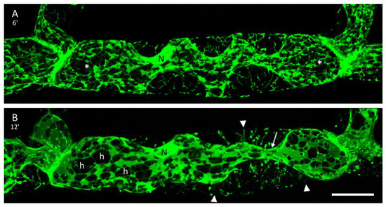 - McCauley, M.M.; Hepler, P.K. Visualization of the endoplasmic reticulum in living buds and branches of the moss Funaria hygrometrica by confocal laser scanning microscopy. Development 1990, 109. [Google Scholar]