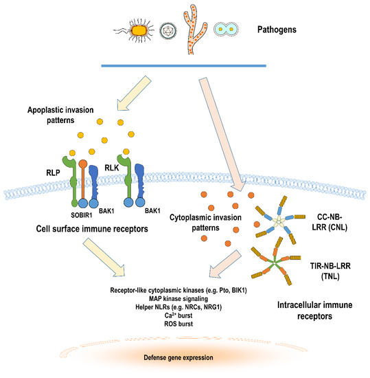 - van der Burgh, A.M.; Joosten, M.H.A.J. Plant immunity: Thinking outside and inside the box. Trends Plant Sci. 2019, 24, 587–601. [Google Scholar] [CrossRef] [PubMed]