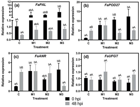 - Delgado, L.D.; Zúñiga, P.E.; Figueroa, N.E.; Pastene, E.; Escobar-Sepúlveda, H.F.; Figueroa, P.M.; Garrido-Bigotes, A.; Figueroa, C.R. Application of a JA-Ile Biosynthesis Inhibitor to Methyl Jasmonate-Treated Strawberry Fruit Induces Upregulation of Specific MBW Complex-Related Genes and Accumulation of Proanthocyanidins. Molecules 2018, 23, 1433. [Google Scholar] [CrossRef]