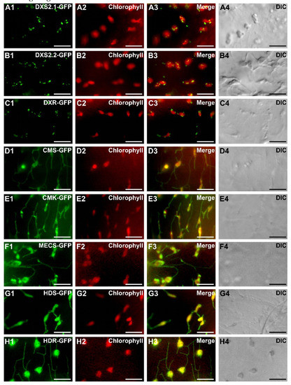 2.3. MEP Pathway Enzymes Are Targeted to Plastids