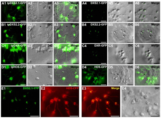2.4. Punctuated Pattern of Localization of DXS and DXR Requires the Whole Protein Sequence