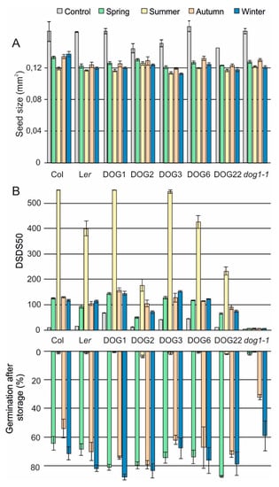 The following are available online at https://www.mdpi.com/2223-7747/9/5/576/s1, Figure S1. Seed performance of the individual genotypes over four seasons. Figure S2. After-ripening requirement for seeds of the summer experiments. Figure S3. After-ripening requirement for dog1-1 seeds produced in all seasons of 2012 and 2014.