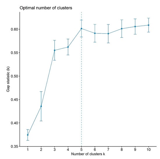 - Maechler, M.; Rousseeuw, P.; Struyf, A.; Hubert, M.; Hornik, K.; Studer, M.; Roudier, P.; Gonzalez, J.; Kozlowski, K.; Schubert, E.; et al. Cluster: Cluster Analysis Basics and Extensions; R Foundation for Statistical Computing: Vienna, Austria, 2019. [Google Scholar]