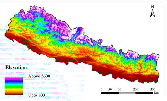 This study covered the entire area of gymnosperms distribution within the geographical territories of Nepal (26.369 N to 30.425 N latitudes and 80.052 E to 88.194 E longitudes). The distance from north to south of the country is 150–200 km and region exhibits high topographic and climatic variation within a small geographical region. Nepal has the most extended elevation gradient, from 60 m, i.e., the flatland of the south to snow-capped mountains in the north, including the highest mountain peak, The Mount Everest [8848m; []]. Dobremez has classified the country based on ecology and biogeography and described 75 vegetation types favored by complex habitat and ecological zones, making it ideal land for plants growth []. Thus, the country is rich in biodiversity, including gymnosperms. Nepal is home to 30 taxa of native gymnosperm, grouped into seven taxonomic families, 13 genera, 26 species []. In this study, we focused on the range distribution of 26 species of gymnosperms based on elevation and environmental gradients (list of species and its maximum and minimum elevation limit is in Table S2 of Supplementary Materials). We used “The Plant List” portal (http://www.theplantlist.org) to validate the names of all species for synonyms and nomenclature errors, and only the accepted names of the species were used in this study.