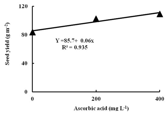 37], reporting that ascorbic acid application accelerates the scavenging of reactive oxygen species, promotes photosynthesis, and maintains enzyme activity at a stable level.