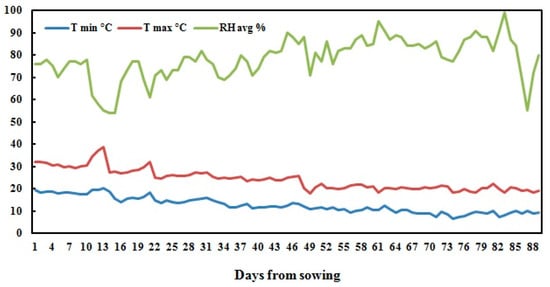The irrigation regimes were started on the 18th of October in 2017 at 19 DAS and lasted for 70 days till the end of the season. The application of irrigation regimes through a sprinkler irrigation system were 207.7 and 126 mm ha−1 season−1 for 100% ETc (WW) and 50% ETc (WS), respectively. Plant samples were collected at 46 DAS for the determination of growth performance and biochemical analysis of common bean plants, where irrigation regimes lasted for 28 days. Notably, the common bean received 145.5 and 94.9 mm ha−1 sample−1 for 100% ETc (WW) and 50% ETc (WS), respectively.