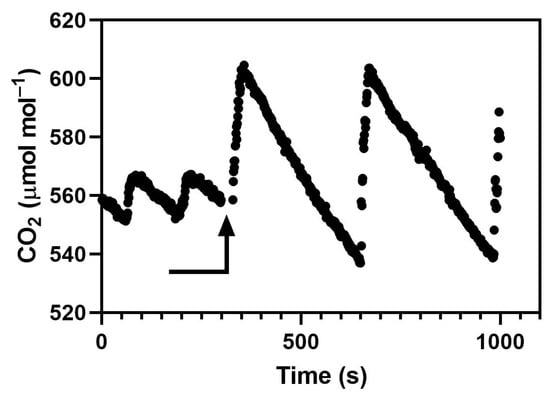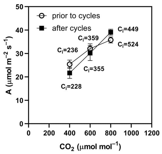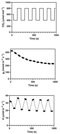 2.3. Responses to Square-Wave Cycles of CO2 (400 and 800 μmol mol−1)