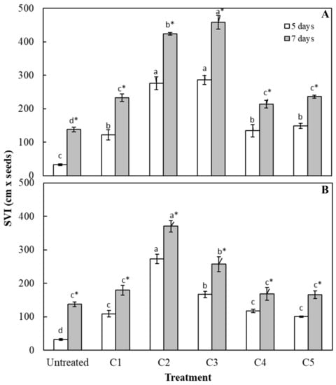 - Santos, P.L.F.; Zabotto, A.R.; Jordão, H.W.C.; Boas, R.L.V.; Broetto, F.; Tavares, A.R. Use of seaweed-based biostimulant (Ascophyllum nodosum) on ornamental sunflower seed germination and seedling growth. Ornam. Hortic. 2019, 25, 231–237. [Google Scholar] [CrossRef]