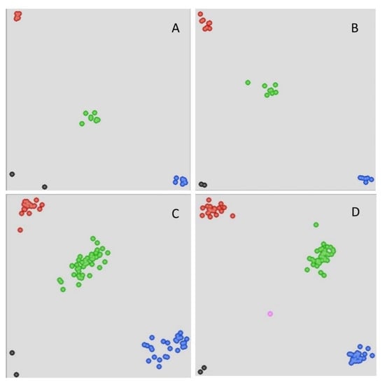 - Doyle, J.J.T.; Doyle, J.L. Isolation of Plant DNA from fresh tissue. Focus 1990, 12, 13–15. [Google Scholar]