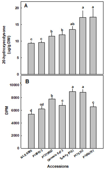 - Cheng, D.M.; Yousef, G.G.; Lila, M.A. Variation in phytoecdysteroid accumulation in seeds and shoots of Spinacia oleracea L. accessions. HortScience 2010, 45, 1634–1638. [Google Scholar] [CrossRef]