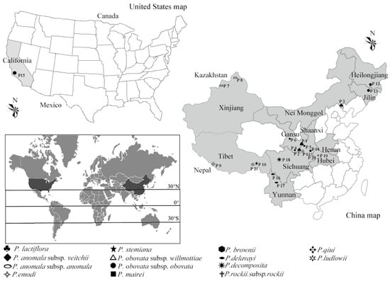- Hong, D. Peonies of the World: Taxonomy and Phytogeography; Royal Botanic Gardens: London, UK, 2010; pp. 56–59. [Google Scholar]