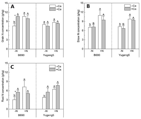 - Liu, J.; Chen, F.; Olokhnuud, C.; Glass, A.D.M.; Tong, Y.; Zhang, F.; Mi, G. Root size and nitrogen-uptake activity in two maize (Zea mays) inbred lines differing in nitrogen-use efficiency. J. Plant Nutr. Soil Sci. 2009, 172, 230–236. [Google Scholar] [CrossRef]