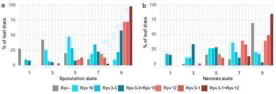 - Gómez-Zeledón, J.; Kaiser, M.; Spring, O. An Extended Leaf Disc Test for Virulence Assessment in Plasmopara viticola and Detection of Downy Mildew Resistance in Vitis. J. Plant Pathol. Microbiol. 2016, 7, 5. [Google Scholar] [CrossRef]