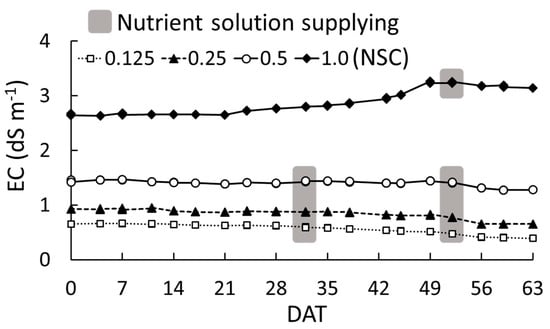 - Ding, X.; Jiang, Y.; Zhao, H.; Guo, D.; He, L.; Liu, F.; Zhou, Q.; Nandwani, D.; Hui, D.; Yu, J. Electrical conductivity of nutrient solution influenced photosynthesis, quality, and antioxidant enzyme activity of pakchoi (Brassica campestris L. Ssp. Chinensis) in a hydroponic system. PLoS ONE 2018, 13, 1–15. [Google Scholar] [CrossRef] [PubMed]