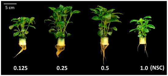 - Kang, J.-G.; van Iersel, M.W. Nutrient solution concentration affects shoot: Root ratio, leaf area ratio, and growth of subirrigated salvia (Salvia splendens). HortScience 2004, 39, 49–54. [Google Scholar] [CrossRef]
