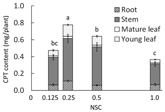 | NSC | Camptothecin Concentration (mg g−1 DW) | |||