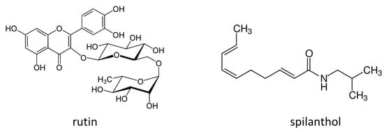 Chemical structure of rutin and spilanthol.