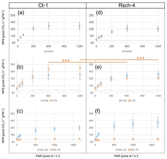 4.2. Quantification of CO2 Assimilation Rates (Net Photosynthesis, NPS)