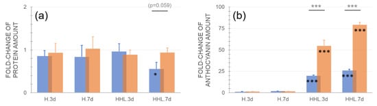 2.3. Accessions Differ in Their Protein and Anthocyanin Concentration under HHL