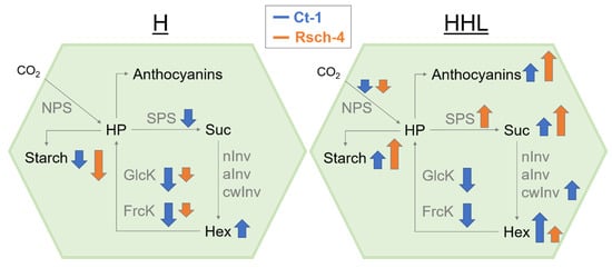 2.2. Sucrose-Hexose Dynamics Indicate Differential Metabolic Regulation in Ct-1 and Rsch-4 during HHL Exposure