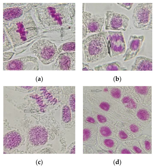 - Liman, R.; Ciğerci, I.H.; Öztürk, N.S. Determination of genotoxic effects of Imazethapyr herbicide in Allium cepa root cells by mitotic activity, chromosome aberration, and comet assay. Pestic. Biochem. Physiol. 2015, 118, 38–42. [Google Scholar] [CrossRef] [PubMed]