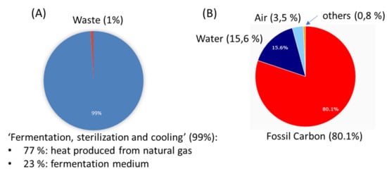 The step ‘fermentation, sterilization and cooling’ was responsible for the overall footprint (99%), while ‘waste treatment’ with only 1% was almost negligible for the total footprint []. The heat produced from natural gas was the main ecological hot-spot with almost 77% of the ecological footprint allocated to the ‘fermentation, sterilization and cooling’ step. The residual 23% of the ecological footprint resulted from the fermentation medium itself. The differentiation regarding the Sustainable Process Index (SPI®) categories is shown in the Figure 4B. The figure demonstrates that fossil carbon was responsible for the major part (80.1%) of the entire ecological footprint. Of the total footprint area 15.6% were caused by emissions to water and 3.5% by emissions to air. The emissions to soil and the used area were minimal. The overall ecological footprint of the production of HRO-C48 added up to a value of 1.4 m2 for the application per ha. This very small ecological footprint resulted from the production of an enormous quantity of cells in the fermentation process (2 × 1017 cells per 10,000 l fermenter) compared to the relatively low application rate (5 × 1011 cells per ha oilseed rape). In ecological terms the treatment of seeds with bacteria offers another considerable advantage over other microbial application methods. The method of bacterial seed application is carried out with the sowing machine once a year within the sowing process, eliminating the need for additional tractor hours. The application of pesticides in the fields, in particular by the use of machines, is a major detrimental contributor to the cumulative ecological impact (Kollmann, personal communication). In summary, we found that the production of S. plymuthica HRO-C48 for the seed treatment against verticillium wilt in oilseed rape is a remarkably environmentally friendly process. Its benefits are derived from the comparatively low application rates of the biocontrol agent in combination with a high number of cells produced during a fermentation process, and from reduction in the need for extra machinery usage.