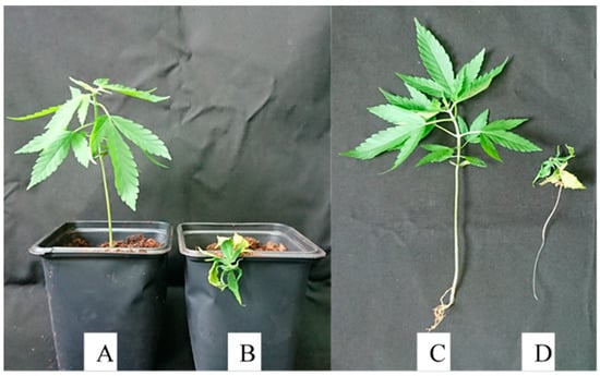 - Punja, Z.K.; Scott, C.; Chen, S. Root and crown rot pathogens causing wilt symptoms on field-grown marijuana (Cannabis sativa L.) plants. Can. J. Plant Pathol. 2018, 40, 528–541. [Google Scholar] [CrossRef]