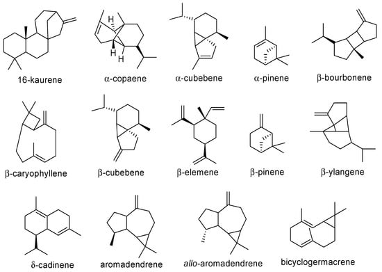 - Pietsch, M.; König, W.A. Enantiomers of sesquiterpene and diterpene hydrocarbons in Araucaria species. Phytochem. Anal. 2000, 11, 99–105. [Google Scholar] [CrossRef]