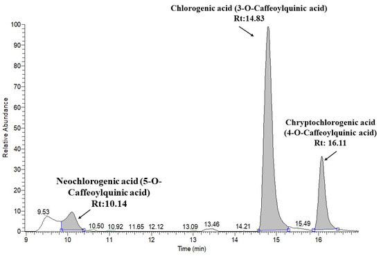 Extracted ion chromatogram of chlorogenic acid structural isomers.