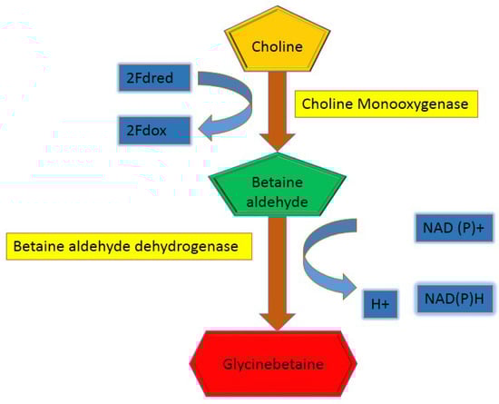 - Giri, J. Glycinebetaine and abiotic stress tolerance in plants. Plant Signal. Behav. 2011, 6, 1746–1751. [Google Scholar] [CrossRef] [PubMed]