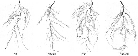 mongolica in comparison with control treatment. Although, differences in the root architecture indexes were not significant between DSE and DSE + SH treatments, but CK and CK + SH treatments showed a significant difference (
