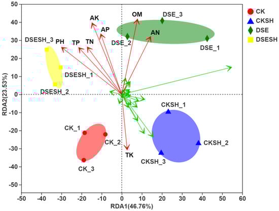 Figure 4). And the RDA analysis result indicated that DSE treatments soil bacterial community structure were positive correlated with AN, OM, AP, AK, TN, TP (