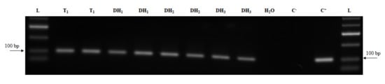 - Edwards, K.; Johnstone, C.; Thompson, C. A simple and rapid method for the preparation of plant genomic DNA for PCR analysis. Nucleic Acids Res. 1991, 19, 1349. [Google Scholar] [CrossRef]
