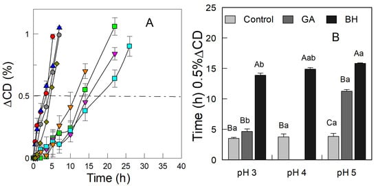 2.4. Effects of the Acidity of the Aqueous Phase on the Antioxidant Efficiency of Bryophyllum Extracts in Fish Oil-In-Water Emulsions