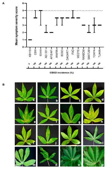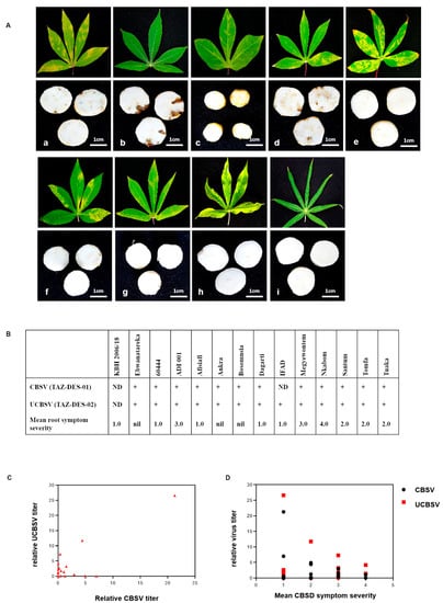 - Mohammed, I.U.; Ghosh, S.; Maruthi, M.N. Host and virus effects on reversion in cassava affected by cassava brown streak disease. Plant Pathol. 2016, 65, 593–600. [Google Scholar] [CrossRef]