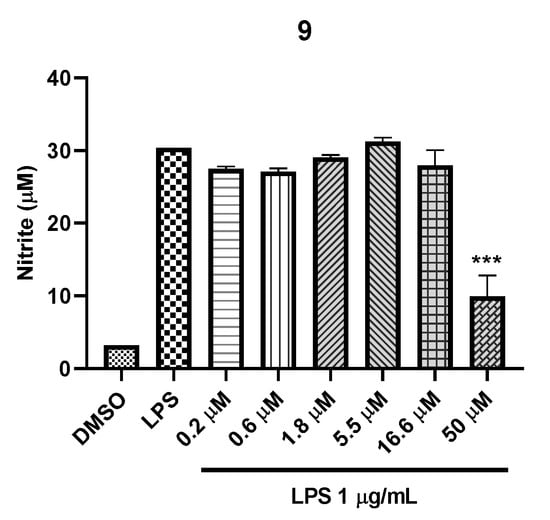 Inhibitory effect of 9 against LPS-induced nitric oxide production in BV2 cells (*** P < 0.001).