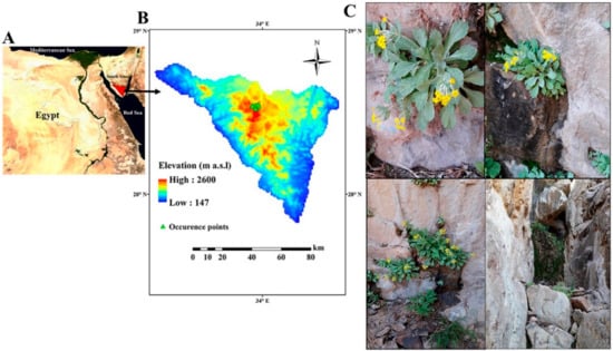 - Abdelaal, M.; Fois, M.; Fenu, G.; Bacchetta, G. Critical Checklist of the Endemic Vascular Plants of Egypt. Phytotaxa 2018, 360, 19–34. [Google Scholar] [CrossRef]