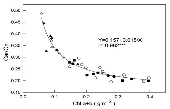 2.3. Relationships betweenChl a + b and Car/Chl a + b