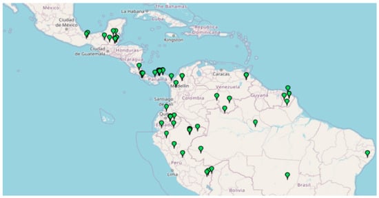 Distribution of A. spruceanum in Belize, Bolivia, Brazil, Colombia, Costa Rica, Ecuador, French Guiana, Guatemala, Guyana, Honduras, Mexico, Nicaragua, Panama, Perú, Suriname and Venezuela (retrieved from Missouri Botanical Garden, 2020).