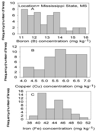 - Bellaloui, N.; Khandaker, L.; Akond, M.; Kantartzi, S.K.; Meksem, K.; Mengistu, A.; Lightfoot, D.A.; Kassem, M.A. Identification of QTL underlying seed micronutrients accumulation in ‘MD 96-5722’ by ‘Spencer’ recombinant inbred lines of soybean. Atlas J. Plant Biol. 2015, 1, 39–49. [Google Scholar] [CrossRef]